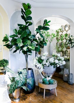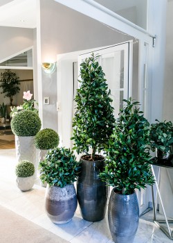 Künstliche Pflanzen geben Räumen das gewisse Extra und schenken uns einen Stimmungsbooster. Ob Hortensien für die Terrasse, Buchs für den Eingangsbereich, UV – beständige Balkonblumen, Lorbeerbaum in verschiedenen Formen, Gräser – Sie finden bei uns eine große Auswahl. Wir bieten beste Qualität, damit Sie lange Freude an Ihrer Dekoration haben und verhelfen Ihnen zu einem „grünen Daumen“!